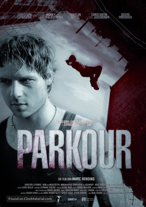 The art of the extreme sport parkour is to acquire the intellectual and physical prerequisites in order to overcome all obstacles efficiently and safely that stand in the way. The scaffolder Richie is a natural talent at running the parkour, but also unequalled in his talent for putting obstacles in his own way. Richie unwinds from his strenuous job with his best pals Nonne and Paule by practicing their mutual passion: parkour. Richie’s other passion is his pretty girlfriend Hannah, whom he loves to death. She is trying a second time around to get her high school diploma and is in a dither trying to prepare for her final maths exam. Since she’s completely out of her depth, Richie offers to ask his best mate Nonne to help her because he was a whiz at maths in school. But the more time she spends with Nonne, the more troubled Richie becomes. His friend Janko, who has a problem with women, warns him to keep an eye on Hannah when Nonne is coaching her, because after all, all women are the same. Stressed out because his boss doesn’t pay his wages, Richie is borne down more and more by delusions of jealousy. He gets into a fight at the disco and causes a serious accident at the construction site. Like in a never-ending nightmare he dashes from one uncontrollable situation to the next, and it seems like everybody and everything is conspiring against him. The noose around Richie’s neck is getting tighter and tighter. https://www.filmportal.de/en/movie/parkour_72b462576c84d1dbe040007f0100440f)